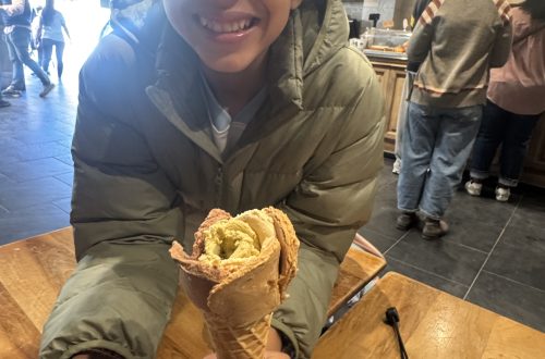 Today we went out into town. We walked around and went to a park. Before going to get gelato, we stopped at a treat store that shelled caramels and candy apples and stuff and got some then, went to the super good gelato place called, Amorino. Their gelato cones are in the shape of flowers. It was all natural and super creamy and delicious! They also had dairy free flavors and gluten free cones. It was very good, like so good.You could pick up to four flavors per cone and they don’t charge you for more flavors. I got Pistachio, dulce de leche, caramel, and hazelnut chocolate. Mine was very…