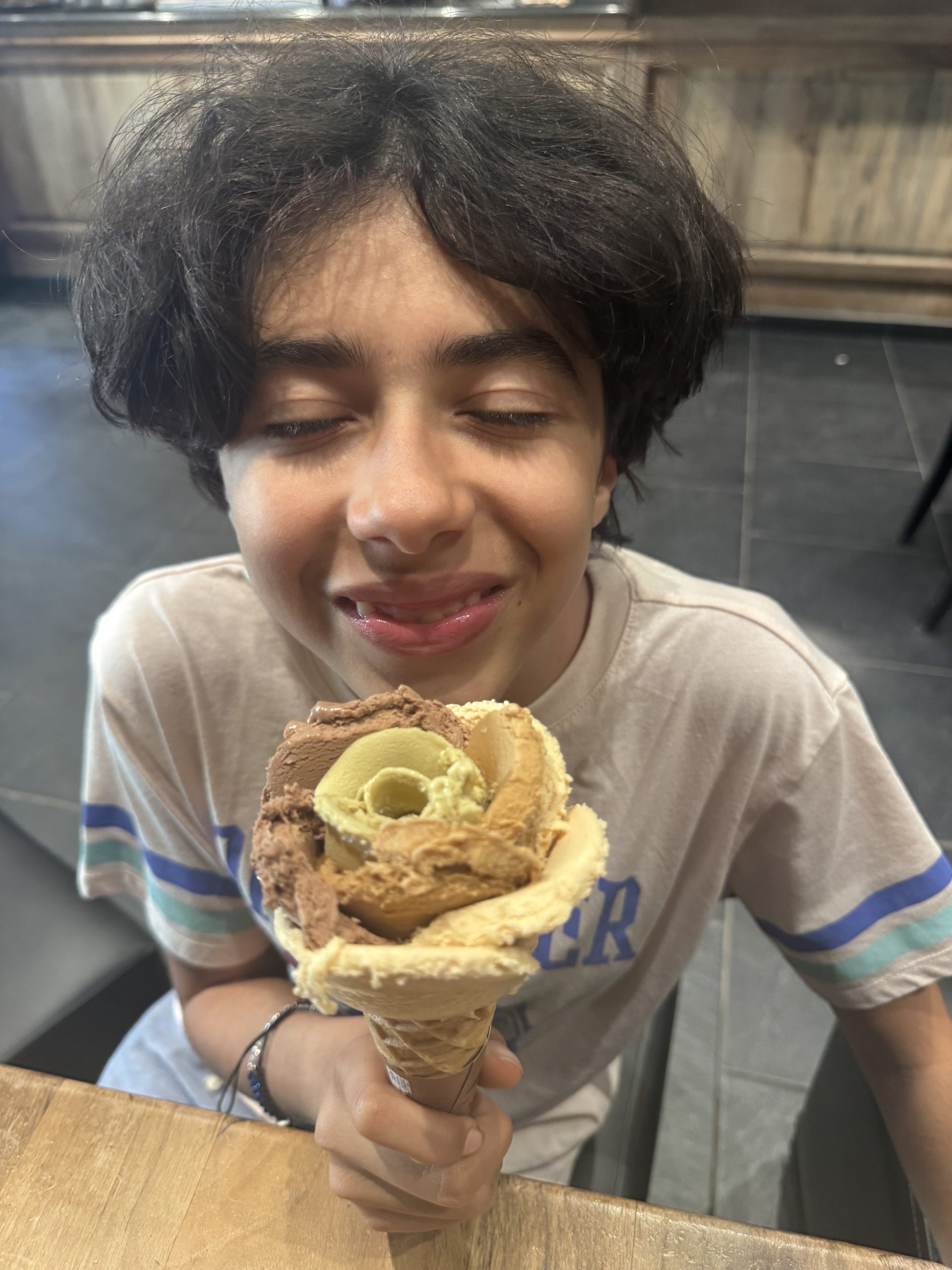 Today we went out into town. We walked around and went to a park. Before going to get gelato, we stopped at a treat store that shelled caramels and candy apples and stuff and got some then, went to the super good gelato place called, Amorino. Their gelato cones are in the shape of flowers. It was all natural and super creamy and delicious! They also had dairy free flavors and gluten free cones. It was very good, like so good.You could pick up to four flavors per cone and they don’t charge you for more flavors. I got Pistachio, dulce de leche, caramel, and hazelnut chocolate. Mine was very…