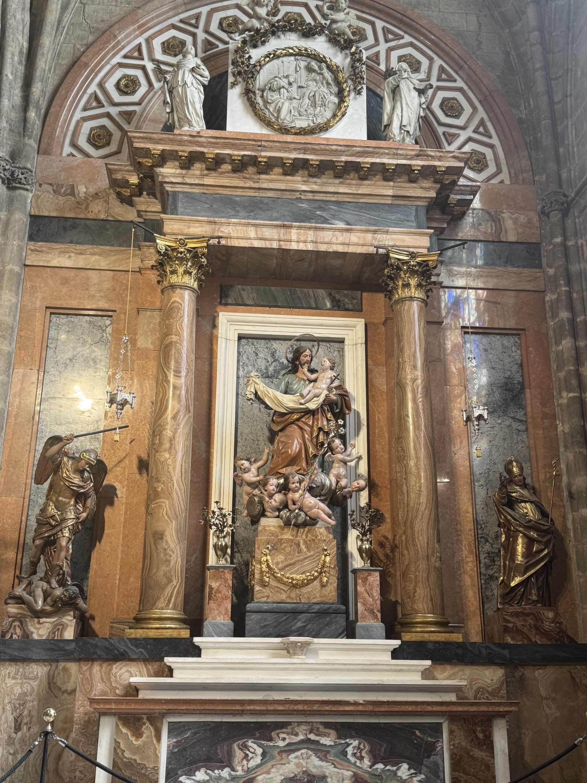 Today we went to the church where Christopher Columbus was buried. The church is the biggest in area in Spain, and, the most visited monument in Spain, which broke the record in 2023 with around 2 million visitors that year. The church started construction in 1401, finishing around 1500. That’s around 600 years ago! After we went to the church, we went to a really good Mexican restaurant that serves very small portions. I got a delicious enchilada Verde. It was so good. After that, we went back to amorinos. Their gelato was really good. I got the same flavor as last time, Pistachio, dulce de leche, chocolate hazelnut, and caramel. It was sooooooo yummy. We are probably going to go back before we leave!