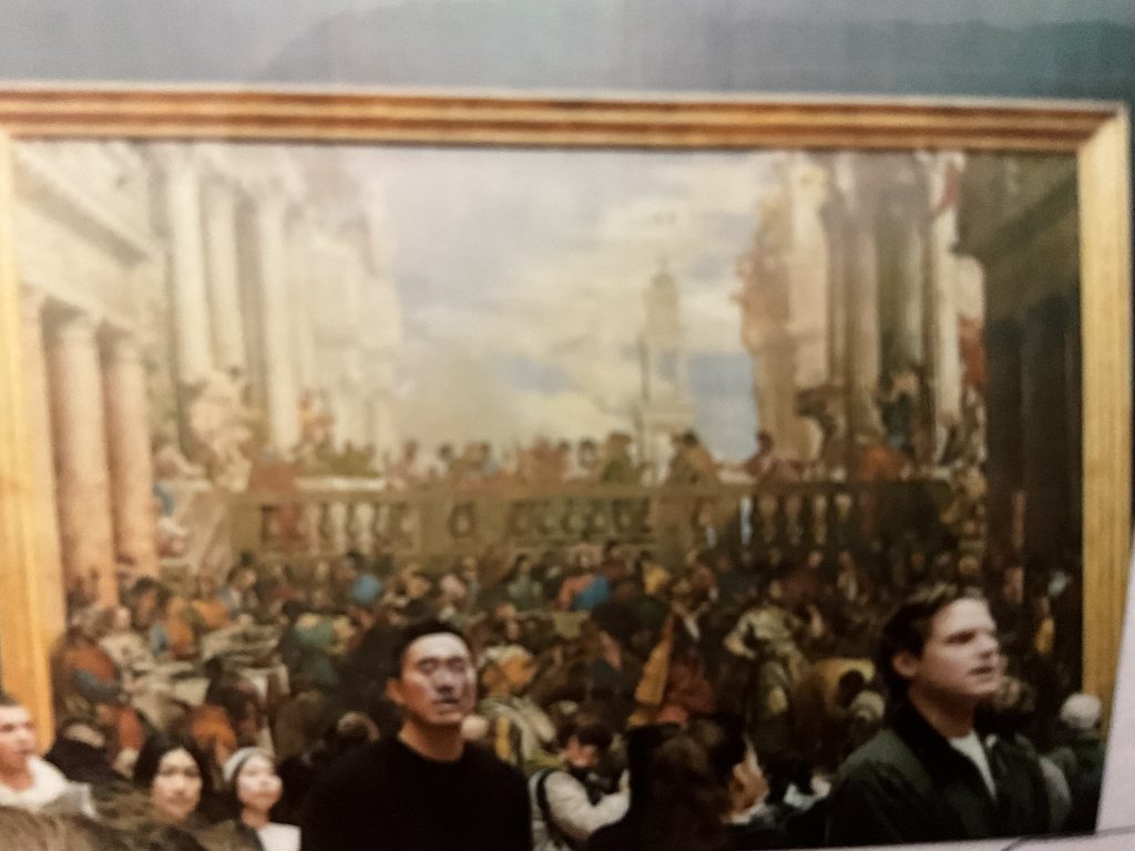 Behind you, if you turn around, is the painting of the wedding in Cana. When you take a photo of this painting, the people in front of it kind off fuse into the painting, making a cool effect.!